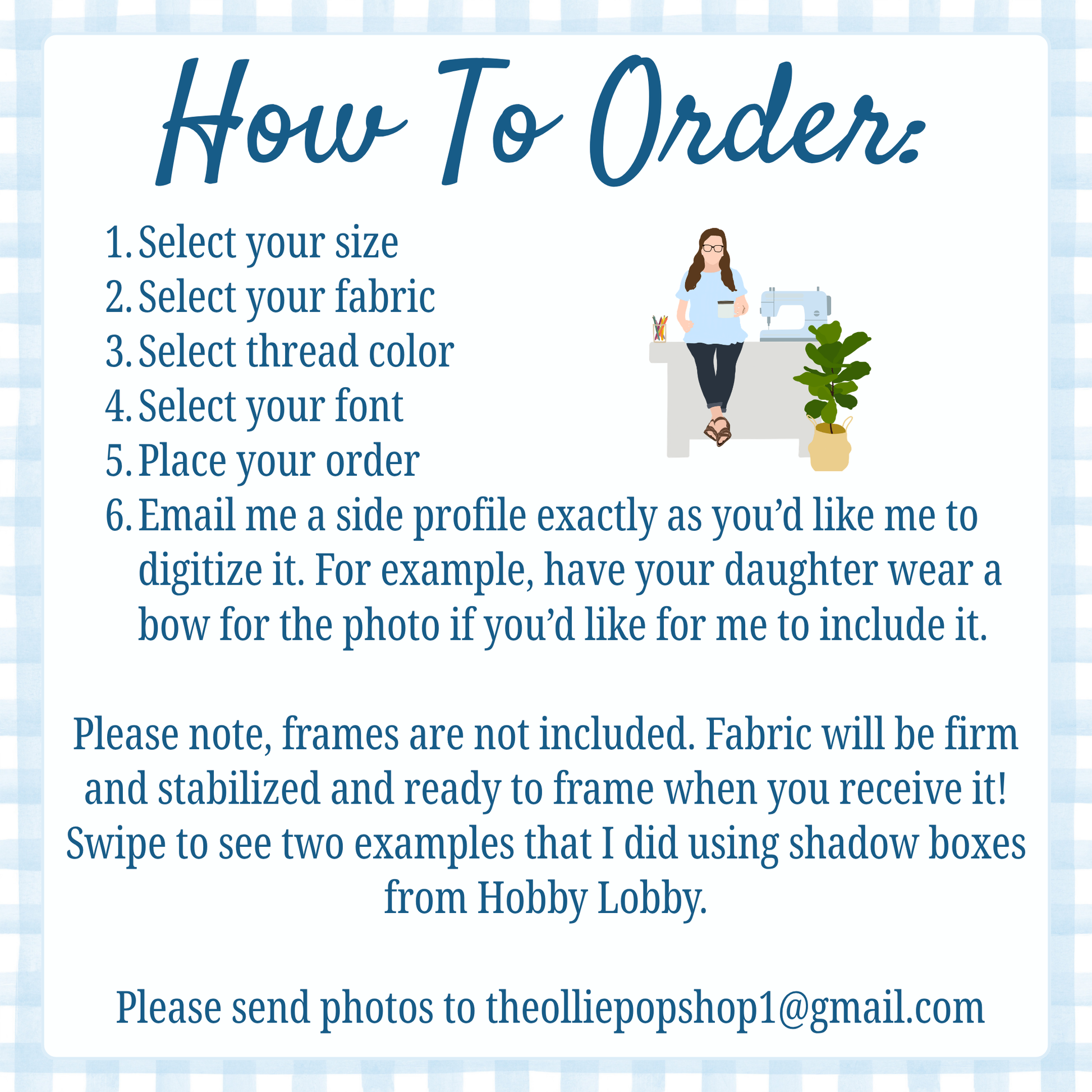 Celebrate Mother’s Day with a timeless embroidered silhouette of your little one. Each piece features a classic stitched profile-boy or girl-creating a simple, meaningful keepsake she’ll treasure.