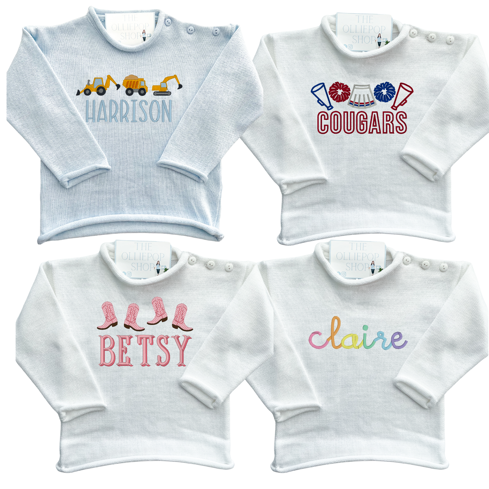 BRAND NEW designs for our 2026 sweaters! These are just ideas! Colors and fonts can be changed and swapped. These are totally customizable. Feel free to message me to design your own. Leave a phone number or email that you check often for a proof if you'd like one before I stitch.